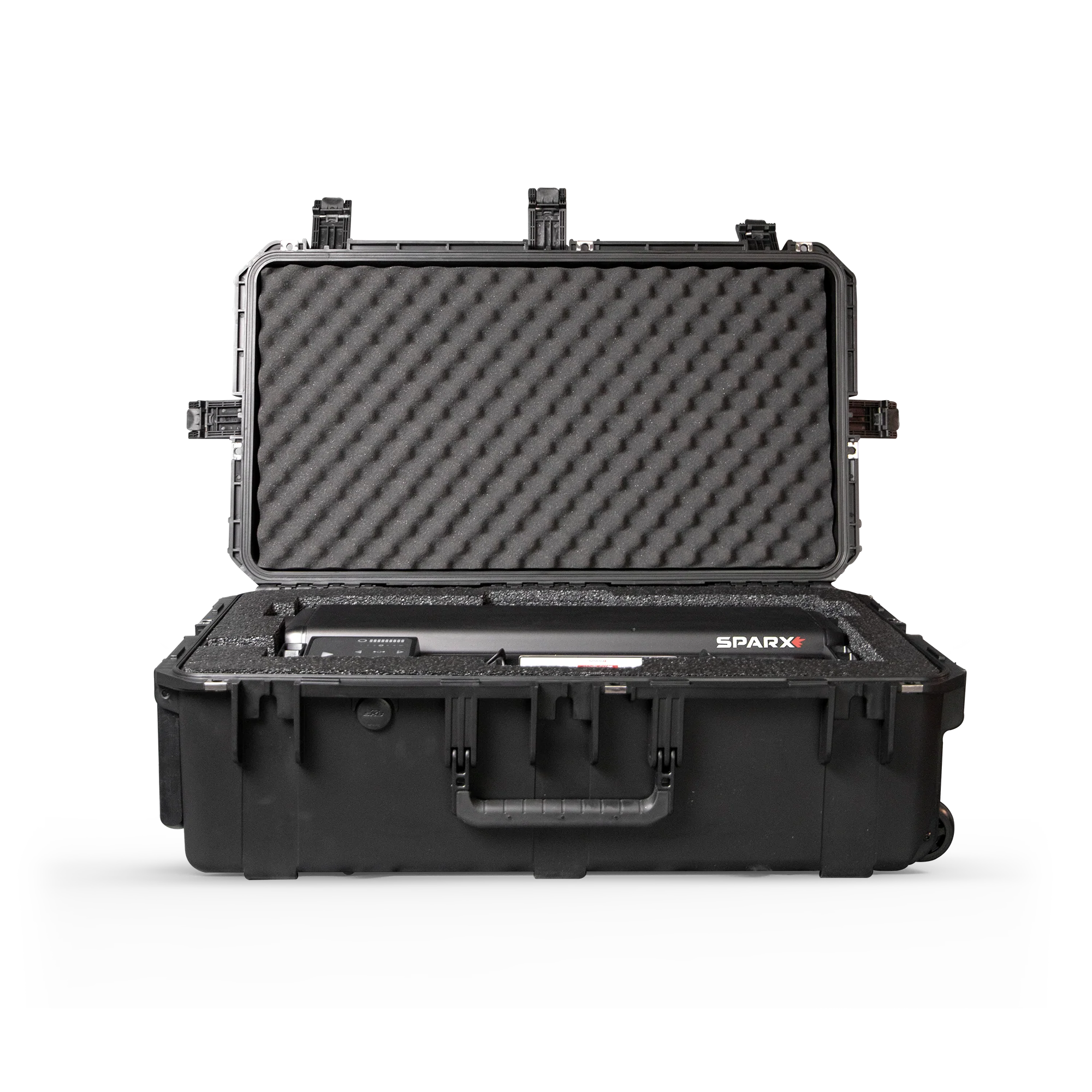 The custom Sparx Hard Travel Case PRO is constructed of molded high-strength polypropylene copolymer resin that's highly resistant to impact and corrosion. The Sparx Hard Travel Case PRO includes a continuous molded-in hinge, a trigger release latch system and an over-molded rubber grip handle for comfort.